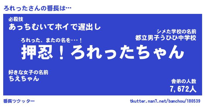 | 意味不明あだ名 | 『ペロリンろれった』『永久保存ろれった』 |