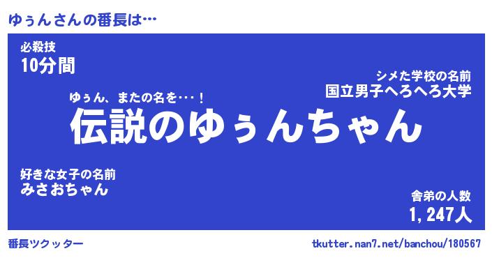 | 伝説のあだ名 | 『伝説のスナイパーゆぅん』 |