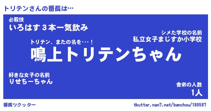 | 肩書あだ名 | 『トリテン店長』『トリテン総理大臣』 |