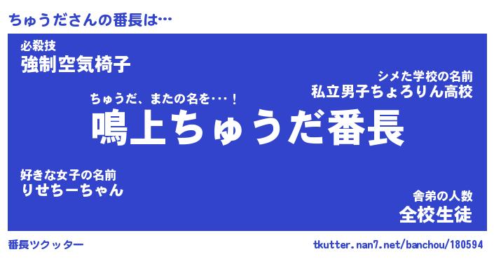 | 肩書あだ名 | 『ちゅうだ御曹司』『ちゅうだ総理大臣』 |