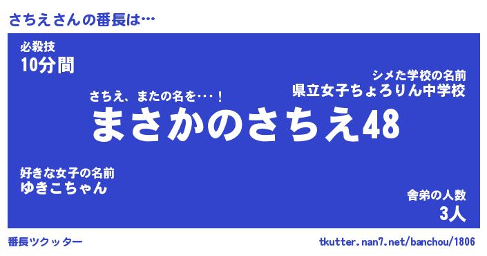 | ヒーロー風カッコイイあだ名 | 『スーパーサチエ』『ウルトラさちえマン』 |