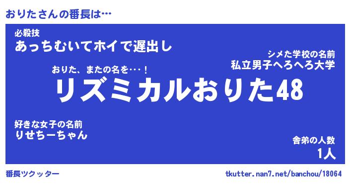 | ヘコむあだ名 | 『おりもー』『豆乳』『おりっぺ』 |