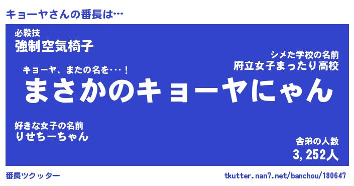 | 意味不明あだ名 | 『ペロリンキョーヤ』『永久保存キョーヤ』 |