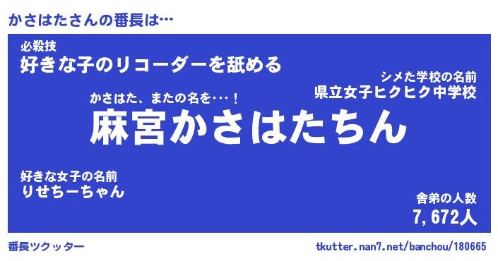 | 意味不明あだ名 | 『ペロリンかさはた』『永久保存かさはた』 |