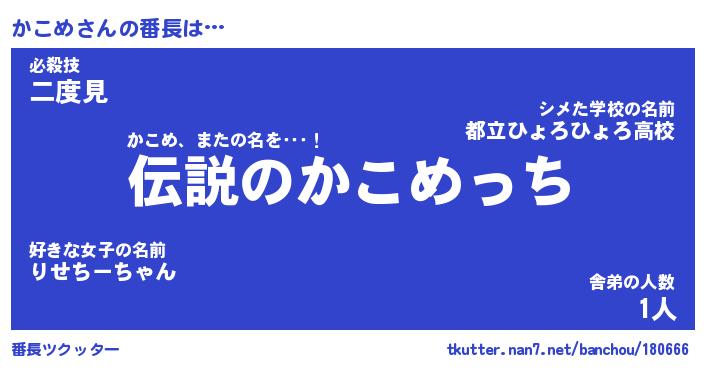 | ヒーロー風カッコイイあだ名 | 『スーパーカコメ』『ウルトラかこめマン』 |