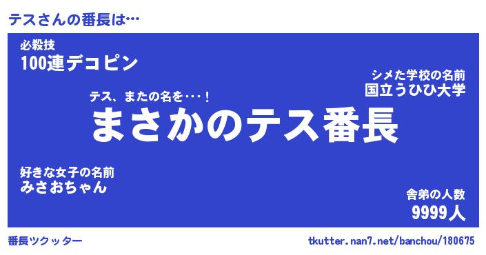 | ヘコむあだ名 | 『テスっふぃ~』『つくし』『テスを』 |