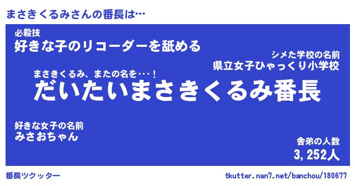 | 伝説のあだ名 | 『不死鳥のスナイパーまさきくるみ』 |