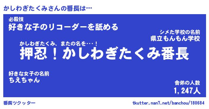| ヒーロー風カッコイイあだ名 | 『スーパーカシワギタクミ』 |