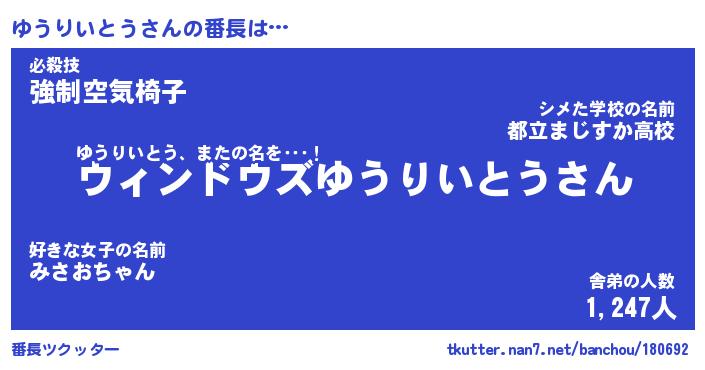| ヒーロー風カッコイイあだ名 | 『スーパーユウリイトウ』『銀牙騎士ユウ』 |