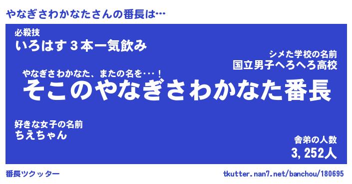 | 意味不明あだ名 | 『ペロリンやなぎさわかなた』 |