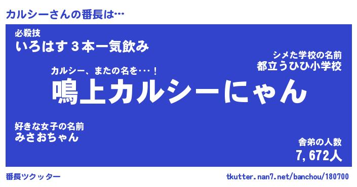 | ピコ太郎風あだ名 | 『カコ三郎』『ピカ四郎』『カル六郎』 |