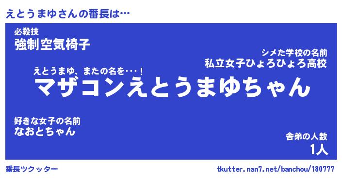 | ファンタジー風あだ名 | 『エトフェル』『エターナルエトウマユー』 |