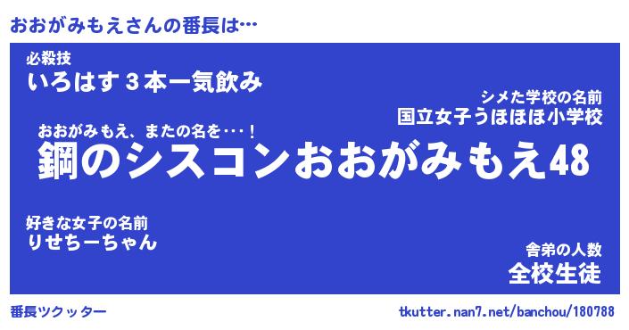 | 恥ずかしいあだ名 | 『プリティーおおがみもえ』『おおっちょ』 |