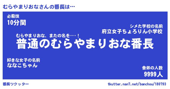 | 伝説のあだ名 | 『不死鳥のスナイパーむらやまりおな』 |