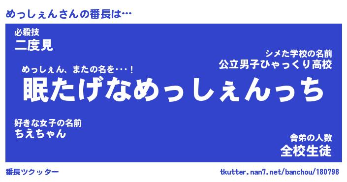 | 2回繰り返すあだ名 | 『めっめっ』『めめっっ』『ねちねち』 |