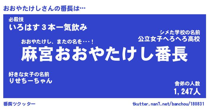 | ピコ太郎風あだ名 | 『オコ二郎』『ピオ五郎』『オオ次郎』 |