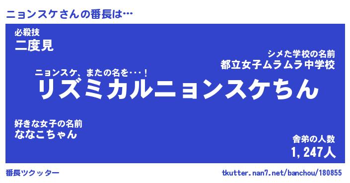 | ヒーロー風カッコイイあだ名 | 『スーパーニョンスケ』『銀牙騎士ニョ』 |