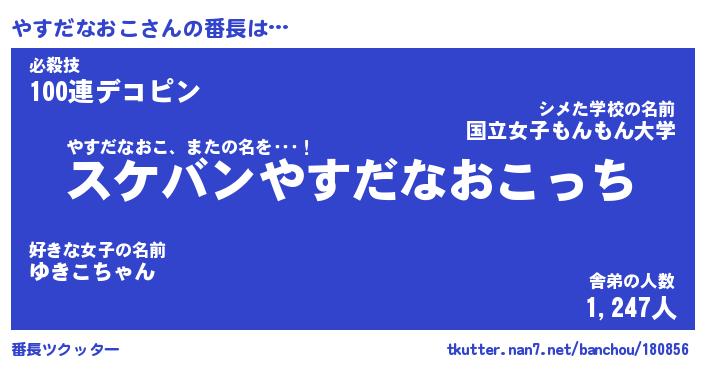 | ピコ太郎風あだ名 | 『ヤコ五郎』『ピヤ六郎』『ヤス四郎』 |
