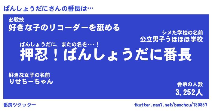 | ポケモン風あだ名 | 『バンチュウ』『バンシダネ』 |