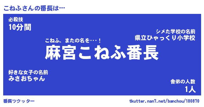 | 2回繰り返すあだ名 | 『こねこね』『ここねね』『あんあん』 |