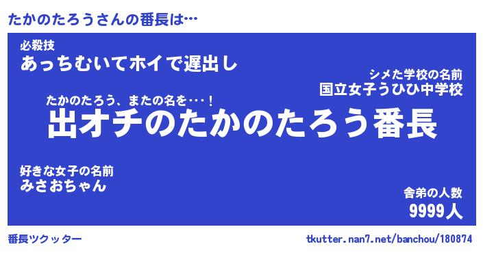 | 肩書あだ名 | 『たかのたろう社長』『たかのたろう教頭』 |