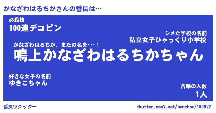 | 意味不明あだ名 | 『ペロリンかなざわはるちか』 |