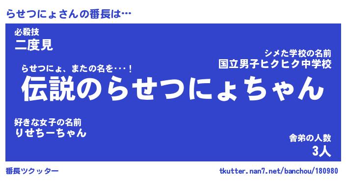 | ポケモン風あだ名 | 『ラセチュウ』『ラセツダネ』 |
