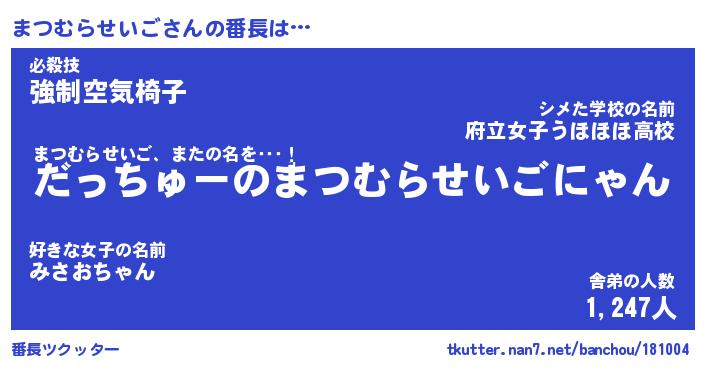 | 男性向けラノベタイトル風あだ名 | 『まつむらせいごの憂鬱』 |
