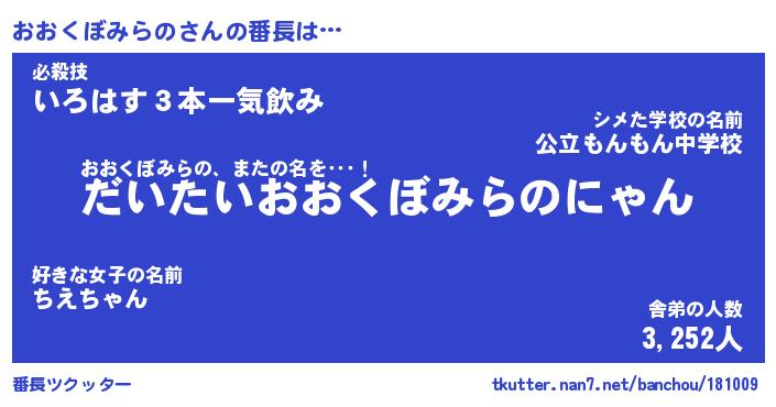 | ピコ太郎風あだ名 | 『オコ二郎』『ピオ史郎』『オオ八郎』 |