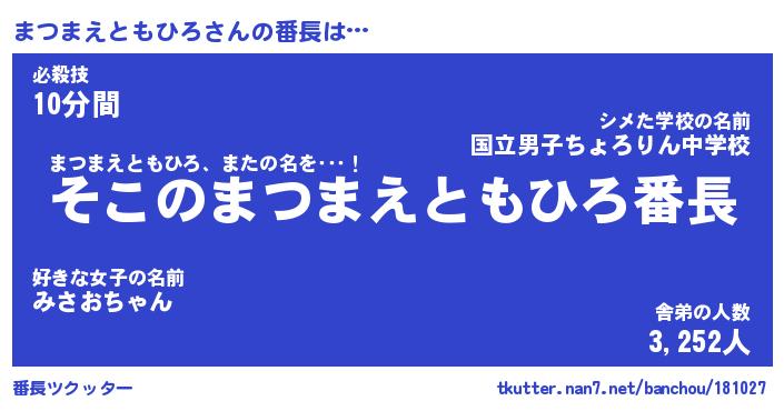 | ピコ太郎風あだ名 | 『マコ一郎』『ピマ五郎』『マツ史郎』 |
