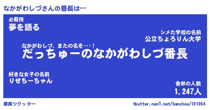 | ヒーロー風カッコイイあだ名 | 『スーパーナカガワシヅ』『銀牙騎士ナカ』 |