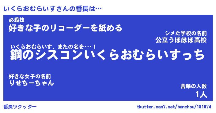 | 伝説のあだ名 | 『封印されしスナイパーいくらおむらいす』 |