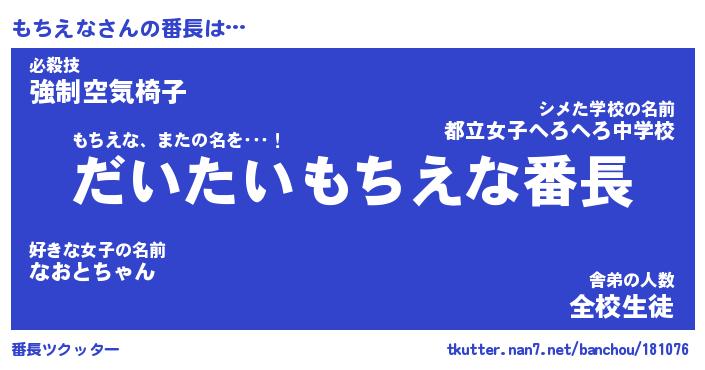 | 意味不明あだ名 | 『ペロリンもちえな』『永久保存もちえな』 |