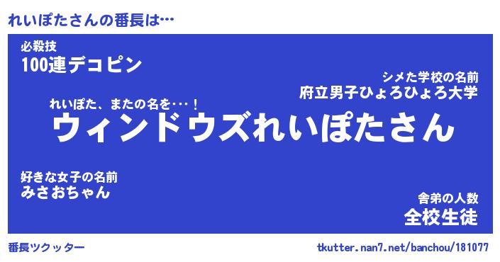 | 男性向けラノベタイトル風あだ名 | 『れいぽたの憂鬱』 |