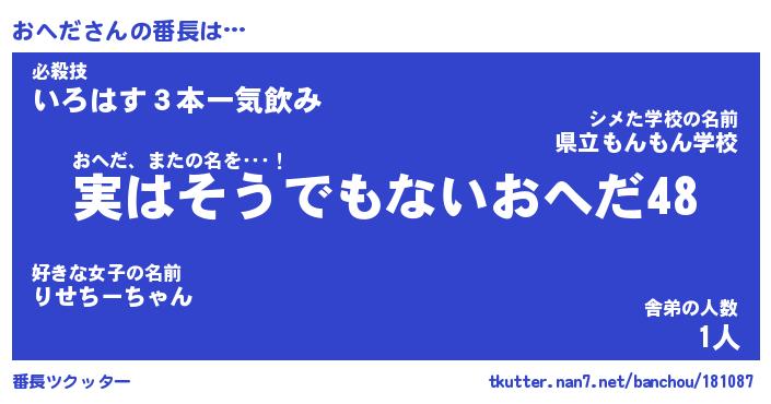 | 意味不明あだ名 | 『ペロリンおへだ』『おへだフォーエバー』 |