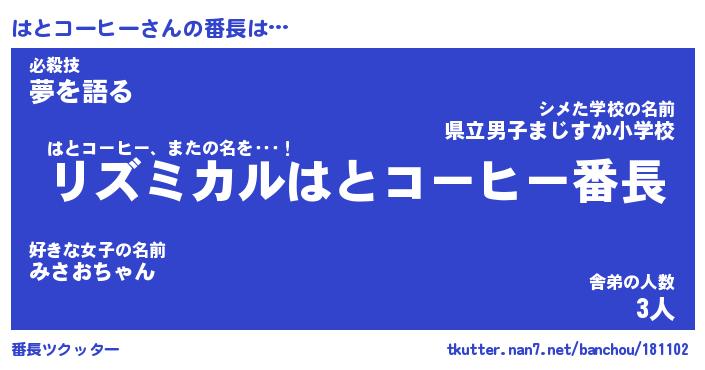 | ヒーロー風カッコイイあだ名 | 『スーパーハトコーヒー』『魔戒騎士ハト』 |