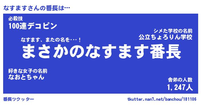 | 意味不明あだ名 | 『ペロリンなすます』『永久保存なすます』 |