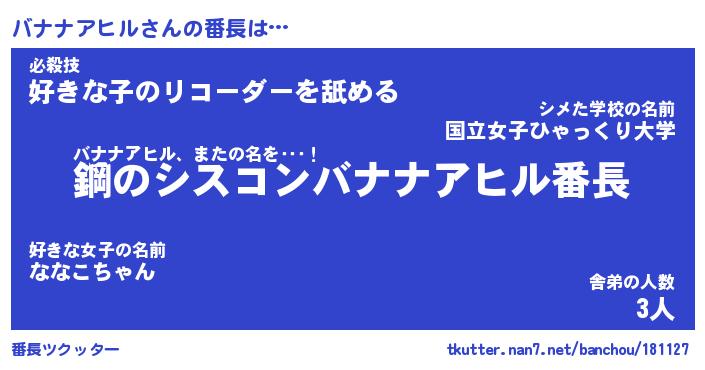 | ヘコむあだ名 | 『バナにー』『なまこ酢』『バナっぺ』 |