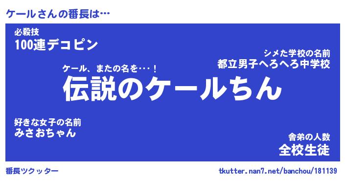 | ファンタジー風あだ名 | 『ケーフェル』『エターナルケールー』 |