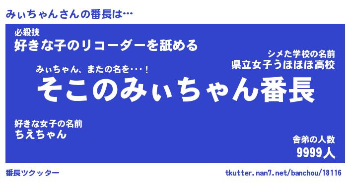 | ピコ太郎風あだ名 | 『ミコ六郎』『ピミ八郎』『ミィ六郎』 |