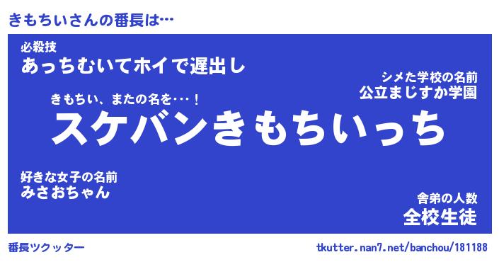 | ヒーロー風カッコイイあだ名 | 『スーパーキモチイ』『天弓騎士キモ』 |