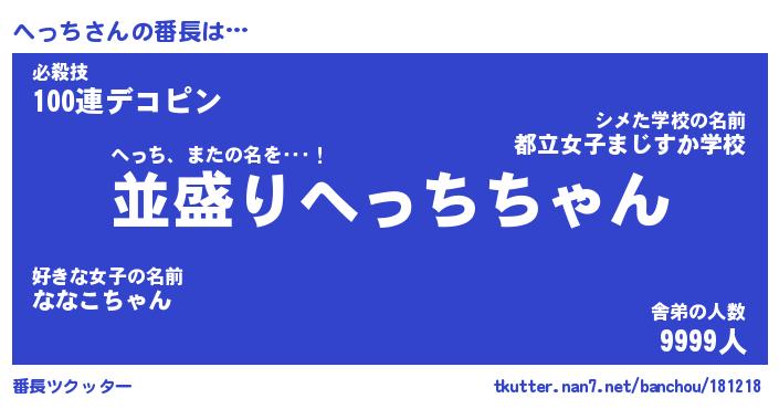 | 意味不明あだ名 | 『ペロリンへっち』『へっちフォーエバー』 |
