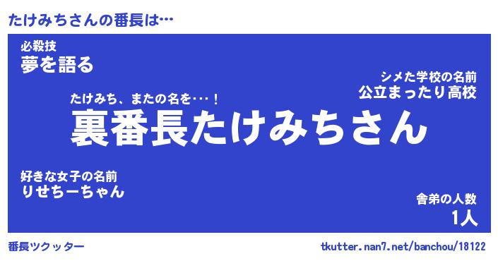 | ファンタジー風あだ名 | 『タケフェル』『エターナルタケミチー』 |