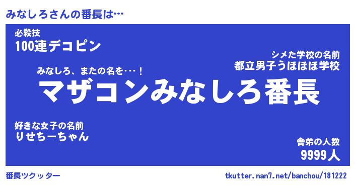 | 意味不明あだ名 | 『ペロリンみなしろ』『永久保存みなしろ』 |