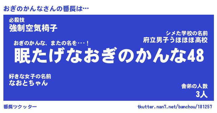 伝説のあだ名 | 『封印されしスナイパーおぎのかんな』 |