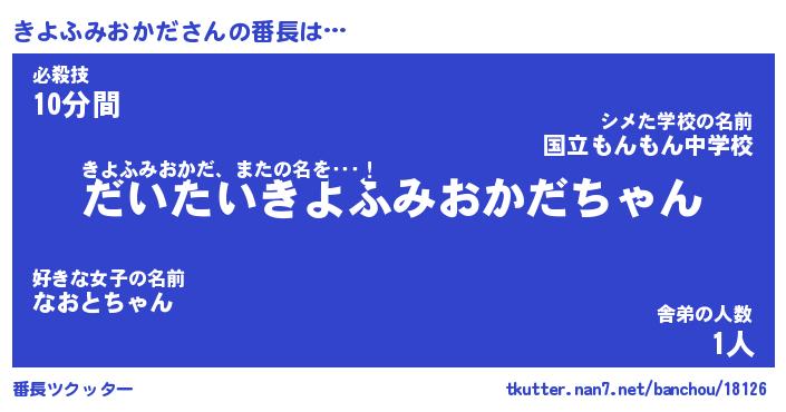| ピコ太郎風あだ名 | 『キコ八郎』『ピキ四郎』『キヨ太郎』 |