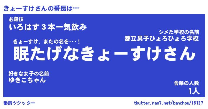 | 伝説のあだ名 | 『封印されしスナイパーきょーすけ』 |