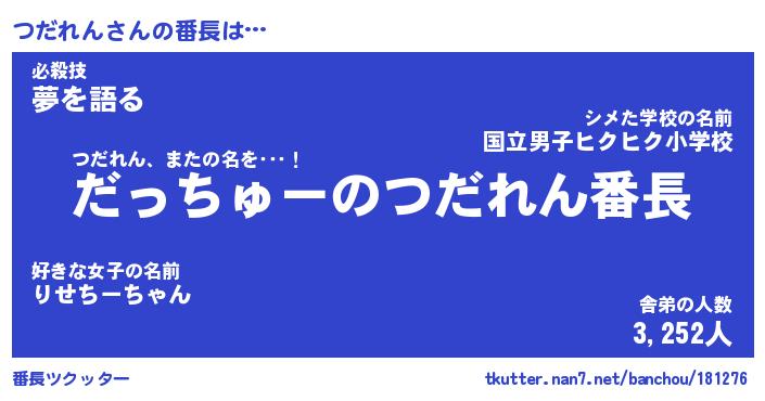 | 2回繰り返すあだ名 | 『つだつだ』『つつだだ』『ぬめぬめ』 |