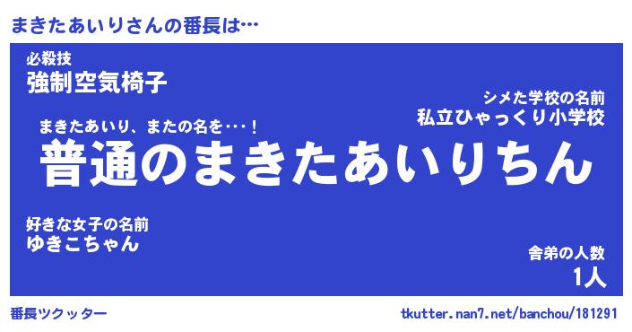 | 肩書あだ名 | 『まきたあいりCEO』『まきたあいり班長』 |