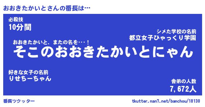 | 男性向けラノベタイトル風あだ名 | 『おおきたかいとの憂鬱』 |